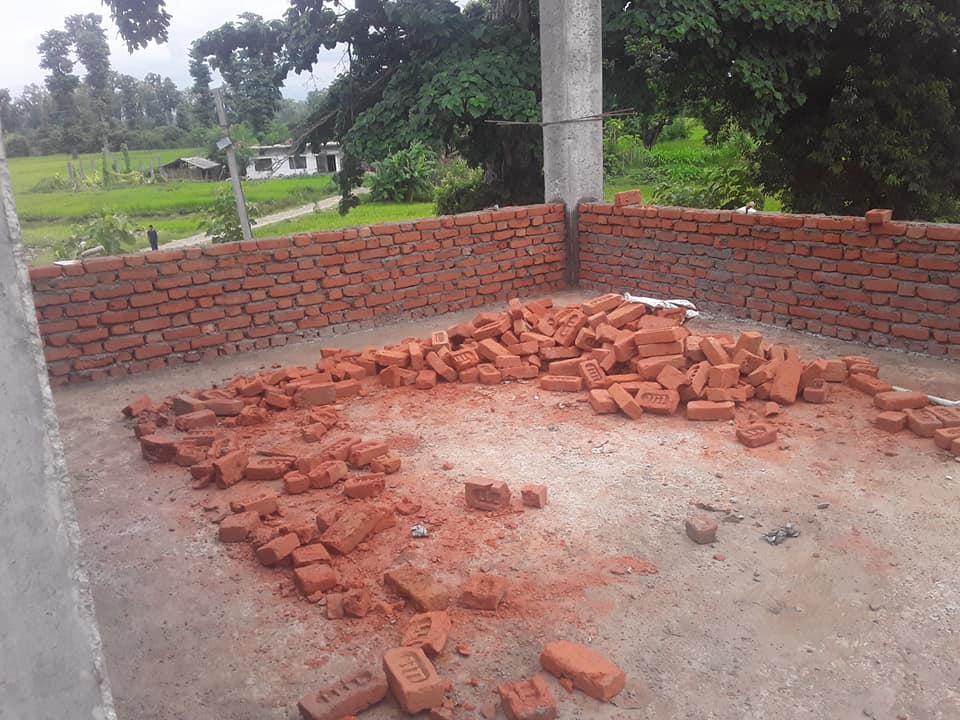गुणस्तरहीन ईटाको प्रयोग गर्दै धनगढीमा बिधालयको भवन बन्दै